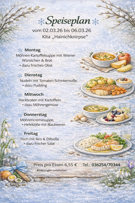 Den Speiseplan für die kommenden 2 Wochen findet ihr hier: